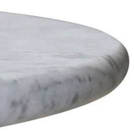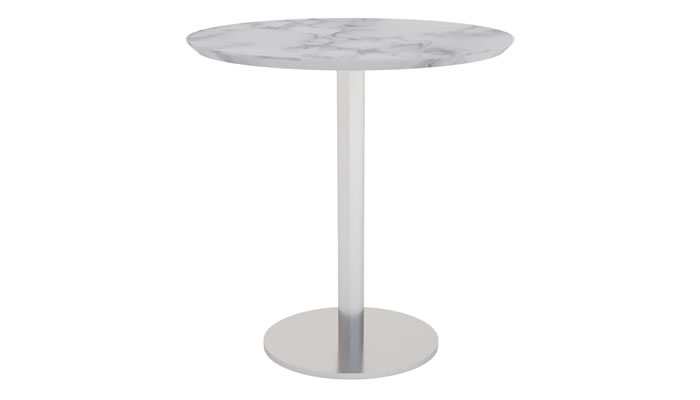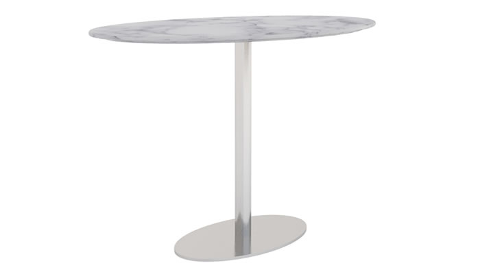 Minsk Oval 160 x 90cm This Minsk oval kitchen table combines a minimalist design with sophistication, making it perfect for casual kitchen dining while ensuring high functionality. The image depicts a brushed stainless steel frame with a 160x90cm Carrara top featuring a straight edge.